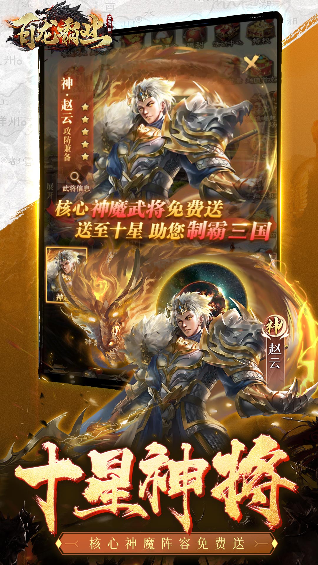 《百龙霸业》是一款三国题材的卡牌放置手游,玩家扮演主公,招募三国名将,通过策略搭配和养成来增强自己的阵容。游戏特色包括丰富的武将系统、自动战斗的竖版回合制玩法、多样的布阵策略以及神兵系统,为武将提供额外增益。玩家可以体验到离线收益,即使不在线也能获得资源,享受轻松休闲的游戏体验。